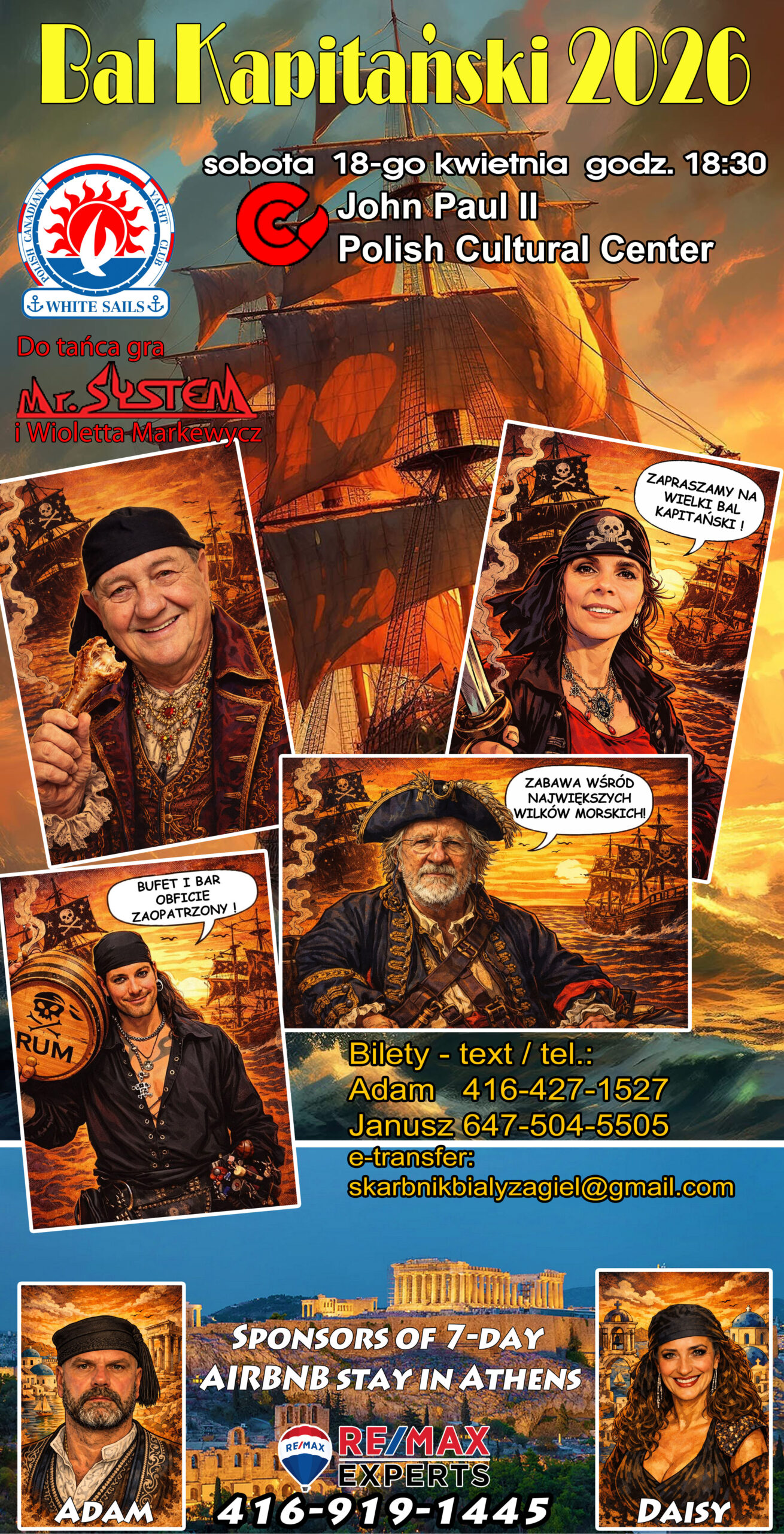 Polsko - Kanadyjski Jacht Klub "Biały Żagiel" w Toronto serdecznie zaprasza na swój "Wielki Bal Kapitański 2026", który odbędzie się